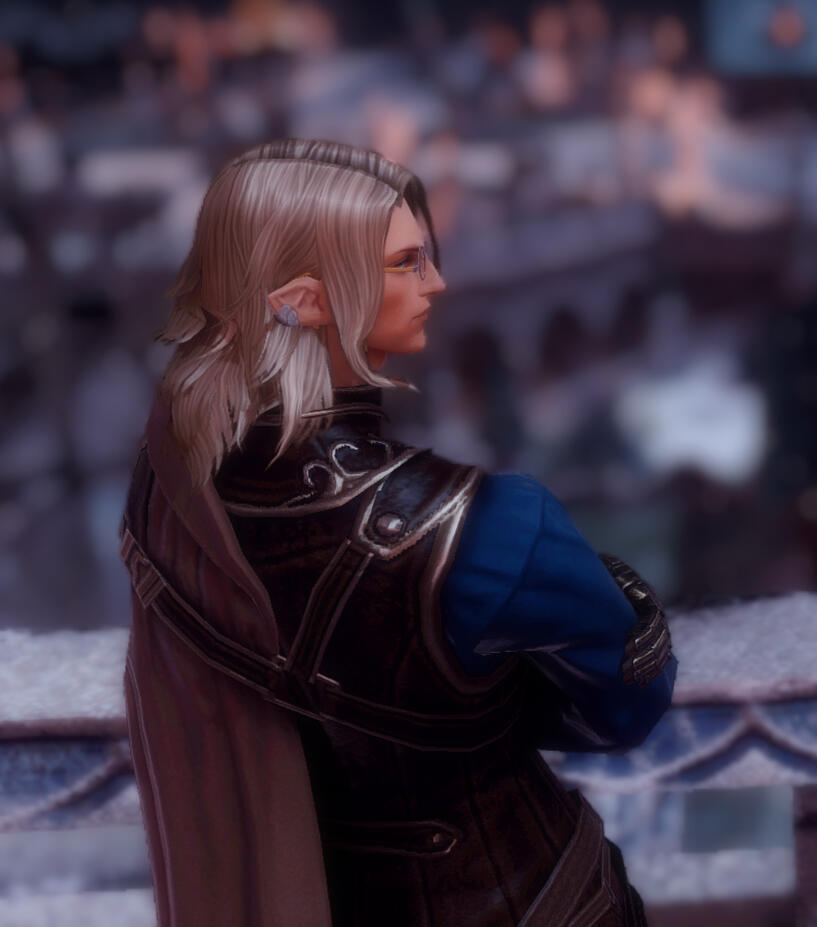 Legitimized bastard son of Lord Avareth Aerwindale - the head of the one of the small houses of Ishgard - is in his late twenties. Golden hair framing fine features of the face, a pair of piercing teal eyes, lips often curved in faint half-smile. Of short and fragile frame, he walks with grace, moving smoothly, almost dreamingly.Born and living in Coerthas till age of 10, he stepped into Ishgard as an outsider, accepted by his father, and was admitted to Scholasticate, where he dedicated himself to studies, perhaps trying to prove his worth. Brilliant student, he was allowed to study most advanced of magicks and everyone expected of him to join clergy. But one day he simply left it all behind and joined Convictors.His service there did not last long and ended tragically: suffered from severe wounds, he spent several years in solitude of his family house, recovering, remaining blind and deaf to the world outside the mansion wall and barely registering the grand changes in his beloved City.Only several years something changed: he packed his belongings and stepped out of Ishgard, in pursue of the goal known only to himself.He spent some time travelling, meeting people and finding new meaning in his life. Now he is back to the Holy See, full of ambitions and ideas of how to participate in changes that happen in modern Ishgard.Personality:Formalities and etiquette is his shield. Appropriate distance is mandatory. Walls between people he sees as something natural. He won't speak of himself, he won't pour his heart out on you. (Oh, unless you're another highborn Ishgardian of higher status, or respected knight veteran, then he will obey the game of statuses) But he'll listen, and help.Glendwind is a combination of gentle, caring heart and strict formal upbringing. It takes time for him to get close to people, and even with closest of them he remains always somewhat collected and formal. Rarely, though, but he allows himself to lash out, showing an attitude: he is set in some ways and some views and takes a great pride in his Ishgardian heritage and does not take it lightly when outsiders judge the city and its ways.
